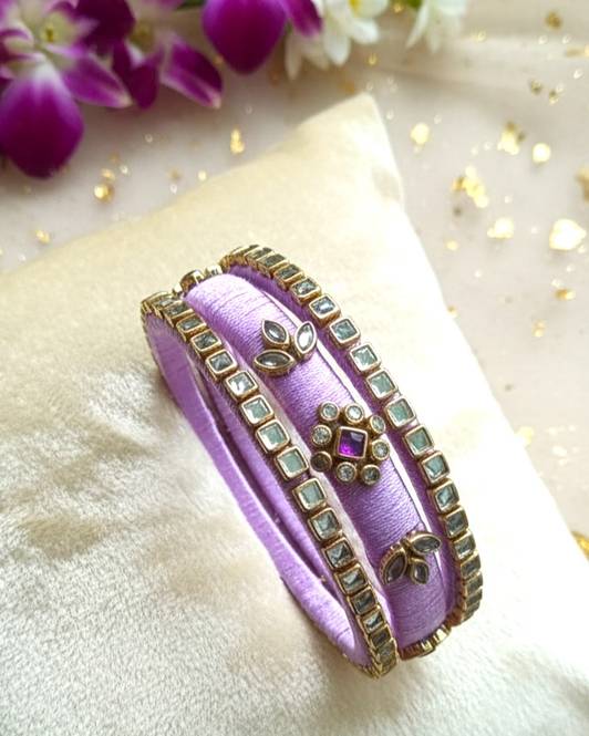 Lavender Square Flower Silk Thread Bangles