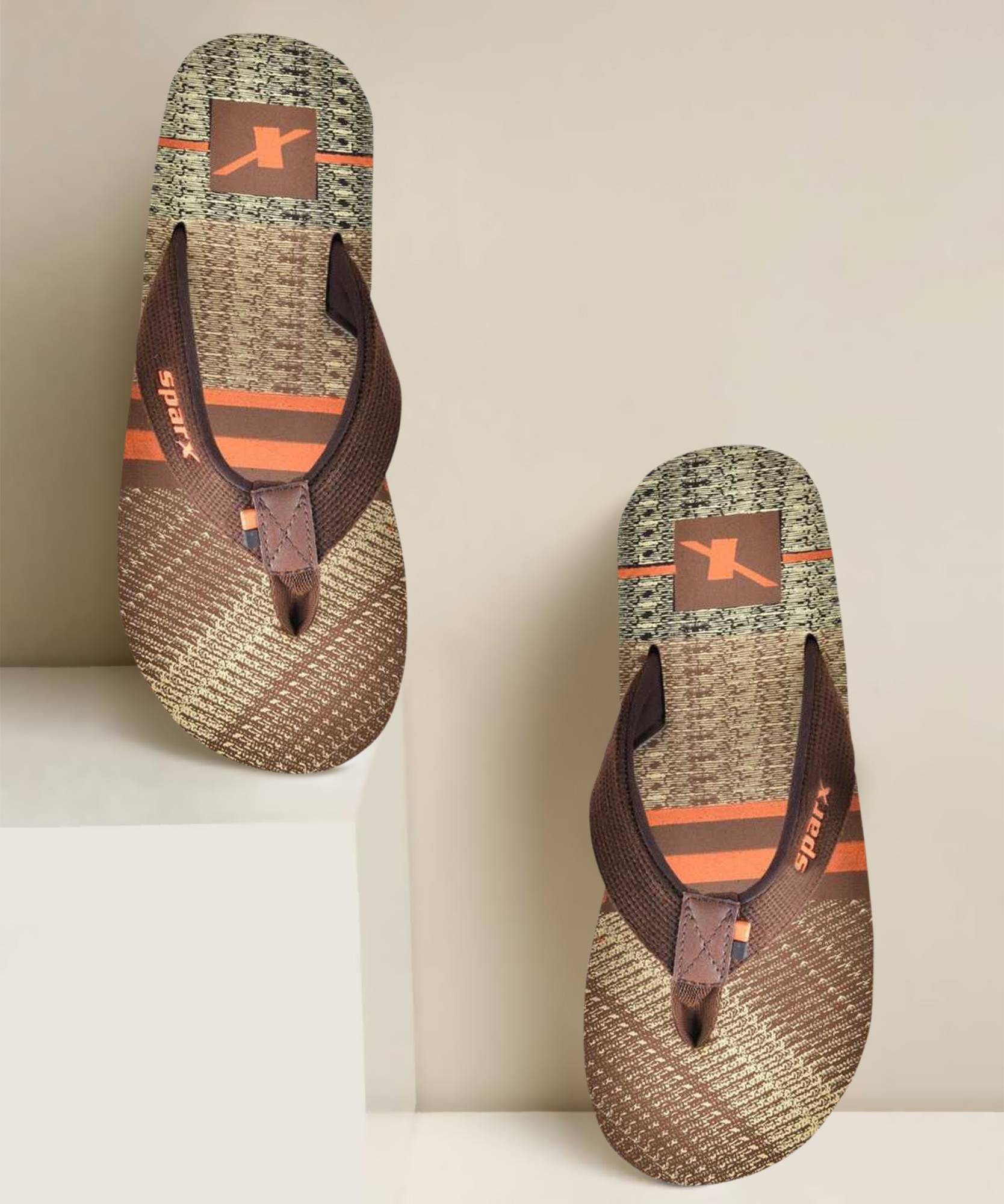 Sparx Men Flip Flops (Brown, Orange , 9)