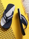 Look stylish and appealing even when you take a walk in the park with this pair of slippers from the esteemed fashion house of Sparx. You can flaunt your chic look without sacrificing your comfort in this pair of navy and grey slippers which is designed with a textured sole and a padded footbed. This pair of slippers is flawlessly finished with a broad strap and a stitch detail.
