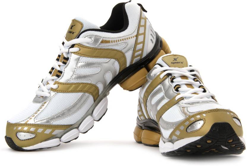 Blind your opponents as you flash past them in your white and golden coloured running shoes from Sparx. The cut work detail and fabric mesh on the body of the sports shoe is not only a style statement but relaxes your feet even more by increasing air circulation.