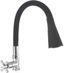 Spazio Fusion Flexo SmartBuy Flexible Brass Swan Neck Flxo Play With 360 Degree Flexible Silicon Hose & Dual Flow Pattern, Hot/Cold Water For Kitchen Sink, Wash Basin Faucets Taps Chrome Finish Silver Plated Pillar Cock, Pack Of 1 Pillar Tap Faucet (Deck Mount Installation Type)