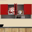 SPECIALITY PANELS 4 Doors Modular Wall Cabinet with Organizer Shelf & Termites Resistance Engineered Wood Kitchen Cabinet (Finish Color - Highland Pine & Red, Pre-assembled)