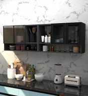SPECIALITY PANELS Aluminium Profile 4 Fluted Glass handless, 6 Organizer Shelf, French Cleat Engineered Wood Crockery Cabinet (Finish Color - Slate Grey Fluted Plain Natural Partial Transparent Glass, Pre-assembled)
