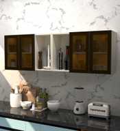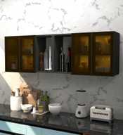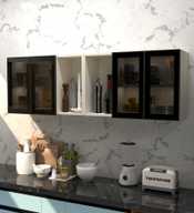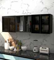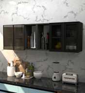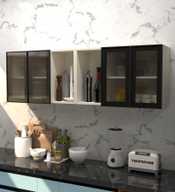 SPECIALITY PANELS Aluminium Profile 4 Grey Tinted Glass handless with 6 Shelfs, French cleat Engineered Wood Crockery Cabinet (Finish Color - Slate Grey - Grey Tinted Natural Partial Transparent Glass, Pre-assembled)