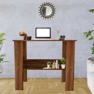 SPECIALITY PANELS Corner rounded Top, One Middle Tier Shelve & Termites resistance Do It Yourself Engineered Wood Office Table (Free Standing, Finish Color - Asian Walnut, DIY(Do-It-Yourself))