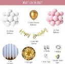 Type | - Gold, White and Pink Balloons, Fairy Lights and Gold HBD Banner- Set of 74pcs