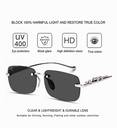 These SpectaSwag sunglasses come with a durable and metal frame that ensures all-day comfort. The rimless design adds a modern edge, while the scratch-resistant lenses provide long-lasting clarity. The flexible nose pads and strong hinges offer a secure fit, making them suitable for regular use. Perfect for both casual and stylish looks, these sunglasses combine fashion, comfort, and protection in one.