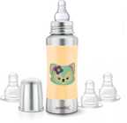SPEEDEX Stainless Steel Baby Feeding Bottle with Internal ML Marking, Silicon Stopper & Silicon Grip (240 ml) (3 Extra Nipple Free) - 150 (SILVER & PINK)