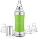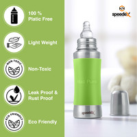 SPEEDEX Stainless Steel Baby Feeding Bottle with Internal ML Marking, Silicon Stopper & Silicon Grip (240 ml) (3 Extra Nipple Free) - 240 ml (SILVER GREEN)