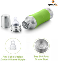 With their high-quality 18/8 stainless steel body, the Speedex 240 ml Baby Feeding Bottle ensures that your baby's nourishment is stored in a safe and non-toxic environment. The leak-proof and spill-proof design ensures mess-free feeding, while the BPA-free and phthalates-free composition ensures your baby's health and safety. Also, rafted to be rust and odour-free, this bottle is designed to withstand the test of time, providing a reliable, hygienic feeding solution for your baby. Furthermore, its lightweight and easy-to-carry design makes it a hassle-free addition to your baby bag, ideal for on-the-go parents. Moreover, the condensation-free exterior prevents uncomfortable wet hands during feeding.
