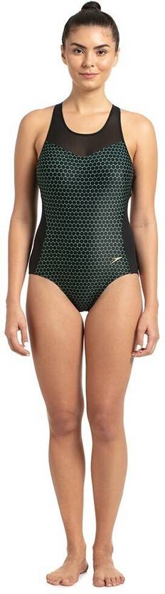 Speedo Women's Power Flex Mesh Panel One Piece Swimwear - Black & Greenglow | PowerFlex Eco Fabric | Ultra chlorine resistance - LYCRA XTRA LIFE | Sun protection - UPF 40+ | Removable Bra Pads | Ventilated mesh panel | Shape retention, providing the perfect fit | Women Swimsuit | Women Swimming Costume | Black Women Swimsuit | Chlorine Resistant Swimsuit | UPF 40 Sun Protection Swimsuit | Power Flex Mesh Panel One Piece