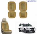 1 X Speedwav Car Velvet Border Wooden Bead Seat Set Of 2-Beige
