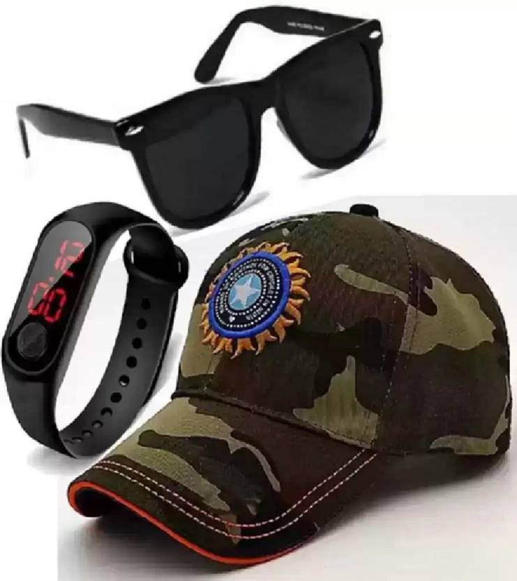 LED DIGITAL WATCH + WAYFARER SUNGLASS + INDIAN ADJUSTABLE BASEBALL
