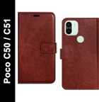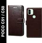 Spicesun Flip Cover for POCO C50, POCO C51 (Brown, Shock Proof, Pack of: 1)