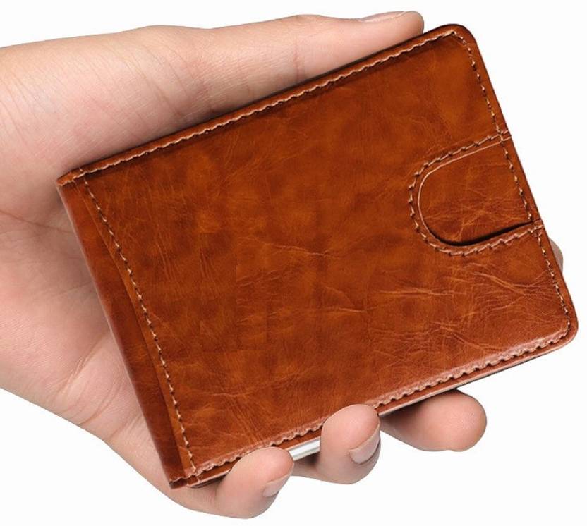 GENUINE LEATHER - This wallet is made of premium soft leather (sleek, soft and slim) with sophisticated stitching and professional design to best combine elegance, functional. Each wallet is truly one of a kind and will gain natural character over time SLIM. FUNCTIONAL - Wallet Size: 4.13 x 3.03 x 0.39 inches. This minimal wallets is designed to hold up to 6 cards (1 side pocket for your most used cards, allows for quick access when traveling, at the store or working place). This slim style makes the wallet comfortable for front and back pocket carry of credit cards, business cards and debit cards, as well as IDs or a driver’s license etc. STYLISH. CONVENIENT - This mini wallet will comfortably carries all your important cards and some cash to meet your daily needs, and remains as thin in your pocket as your smartphone. Designed with outside smart push port for easy access to one daily needs cards, and quick access ID Window to make your life easy. It is superb for travel, and everyday use, keeping cards safe and organized! Super Slim design. Minimalistic Wallet 6 card compartments, 1 coin compartment with chain and a money clip.