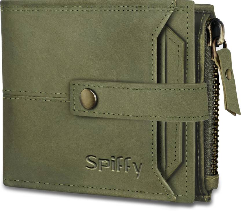 SPIFFY Men Trendy Green Genuine Leather Wallet (12 Card Slots)