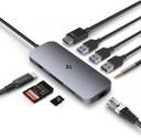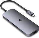 Spigen USB C Hub, 9-in-1 100W PD 3.0 4K 30Hz HDMI 5Gbps USB-A and 2 USB-A Data Ethernet Port, Audio jack, microSD/SD Card Reader USB Hub (Dark Silver)