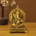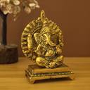 Spillbox Brass Gold finished Sinhasan Ganesha God Idol Statue Religious Décor Decorative Showpiece - 11 cm (Metal, Gold)