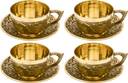Spillbox Pack of 4 Brass Engraved Coffee Cup and Saucer | Coffee Cup - Cup and Saucer (Gold, Cup and Saucer)