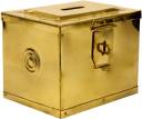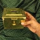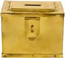 • Made from durable brass, a metallic alloy of copper and zinc., • Distinctive golden color and attractive appearance., • Typically has a slot on the top for inserting coins or bills, • Often has a shiny finish that can be polished to maintain its luster, • Cherished as heirlooms or gifts for special occasions.