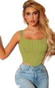 Material Cotton , Pattern: Solid, Sleeve: Sleeveless, Neck: Square, Fit Type: Slim Fit, Closure: Pull On, Details: Crop Top, Ribbed, Tank, Made in india