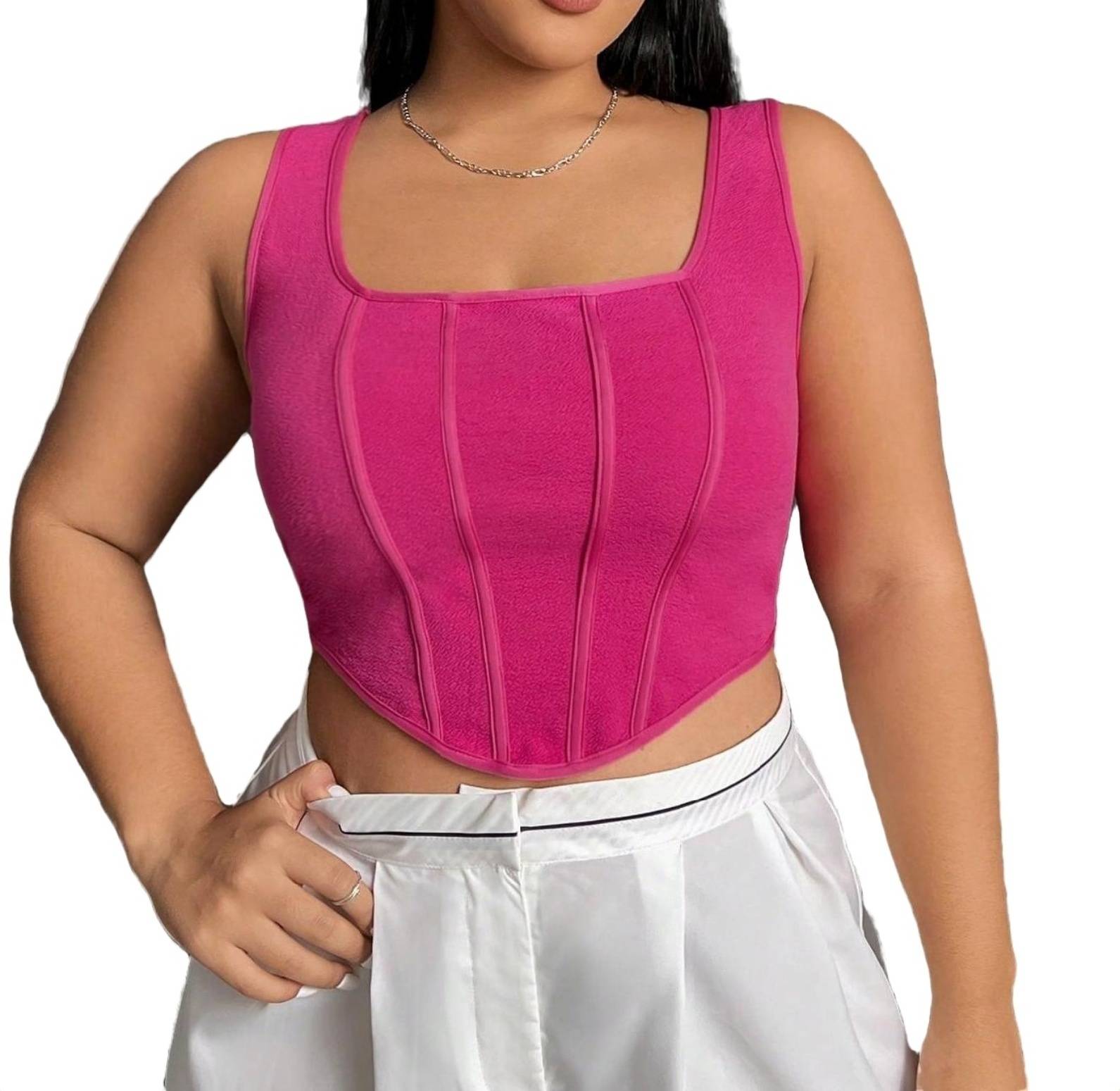 SPIRO Women's Sleeveless Square Neck Crop Tank Top (Size- Suitable upto 32) (Color-Pink)