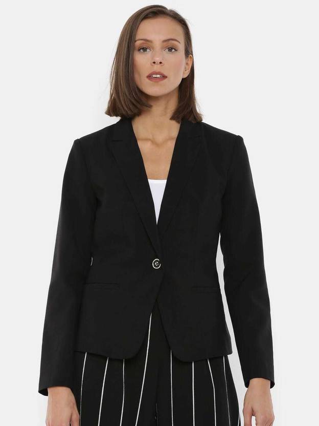 Women Solid Single Breasted Casual Blazer (Black)