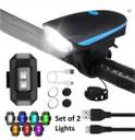 USB Rechargeable 2-in-1 Bicycle Horn Light with Rear Tail/Helmet Light