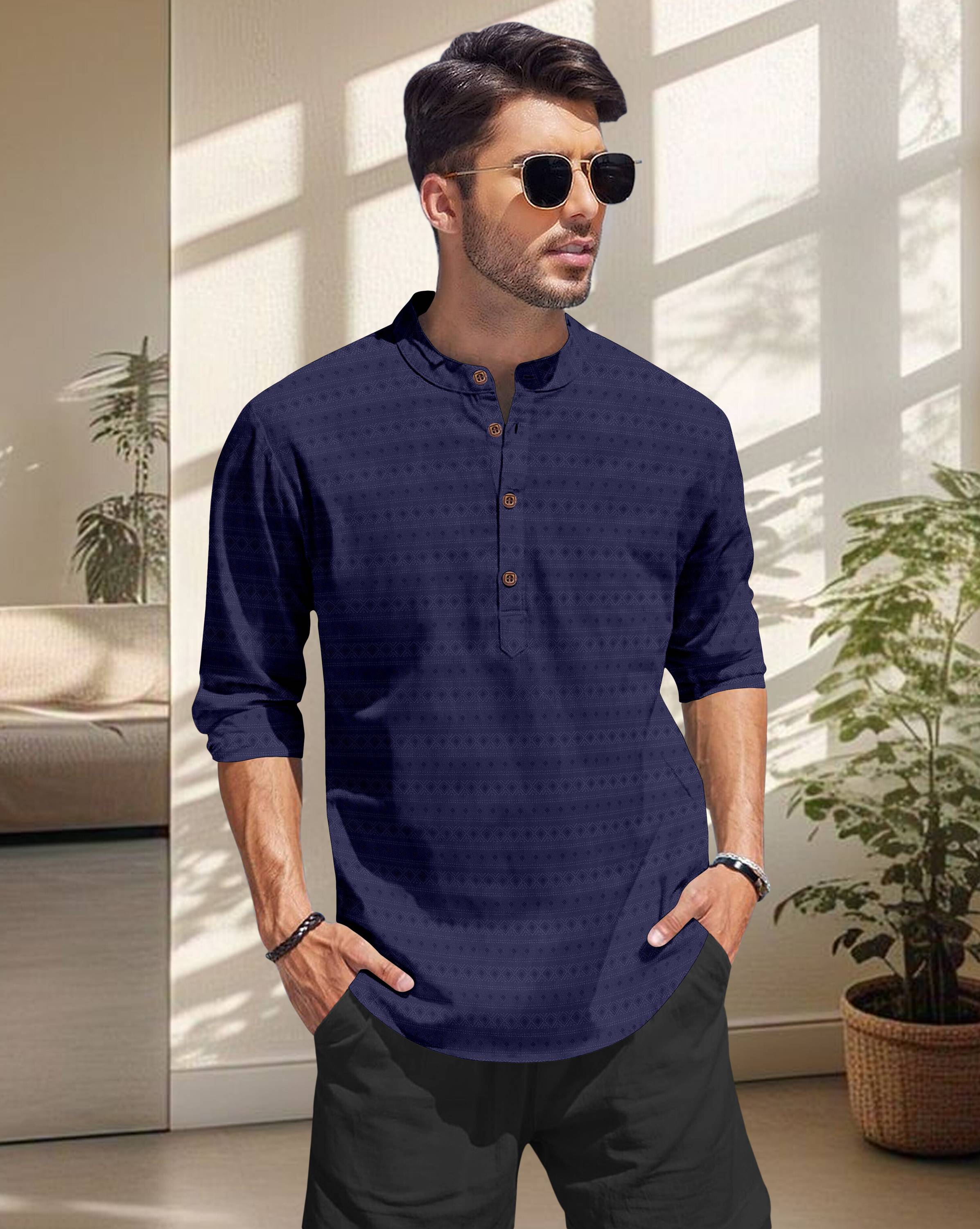 SPOQUE Men Printed Straight Kurta (Dark Blue)