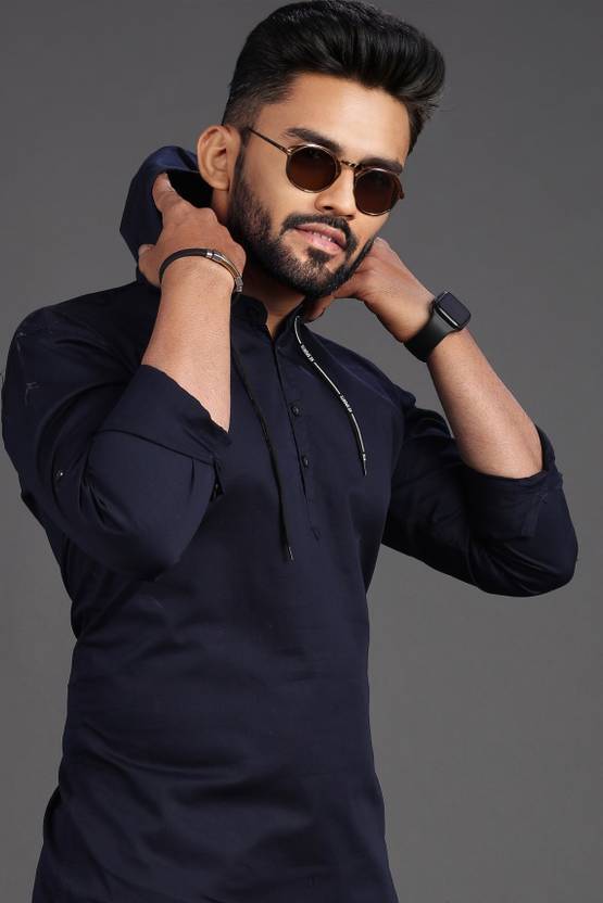 SPOQUE Men Solid Casual Dark Blue Shirt