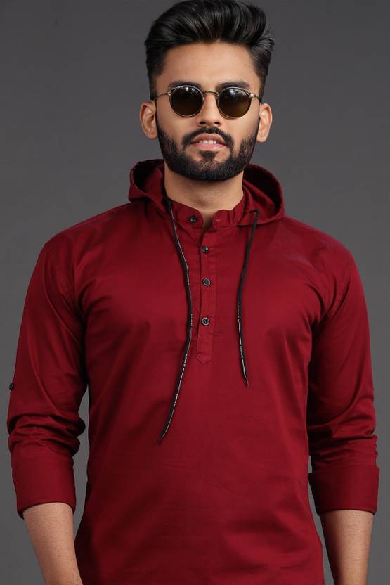 SPOQUE Men Solid Casual Maroon Shirt