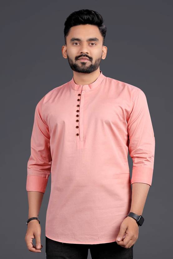 Men Solid Cotton Blend Straight Kurta (Pink)