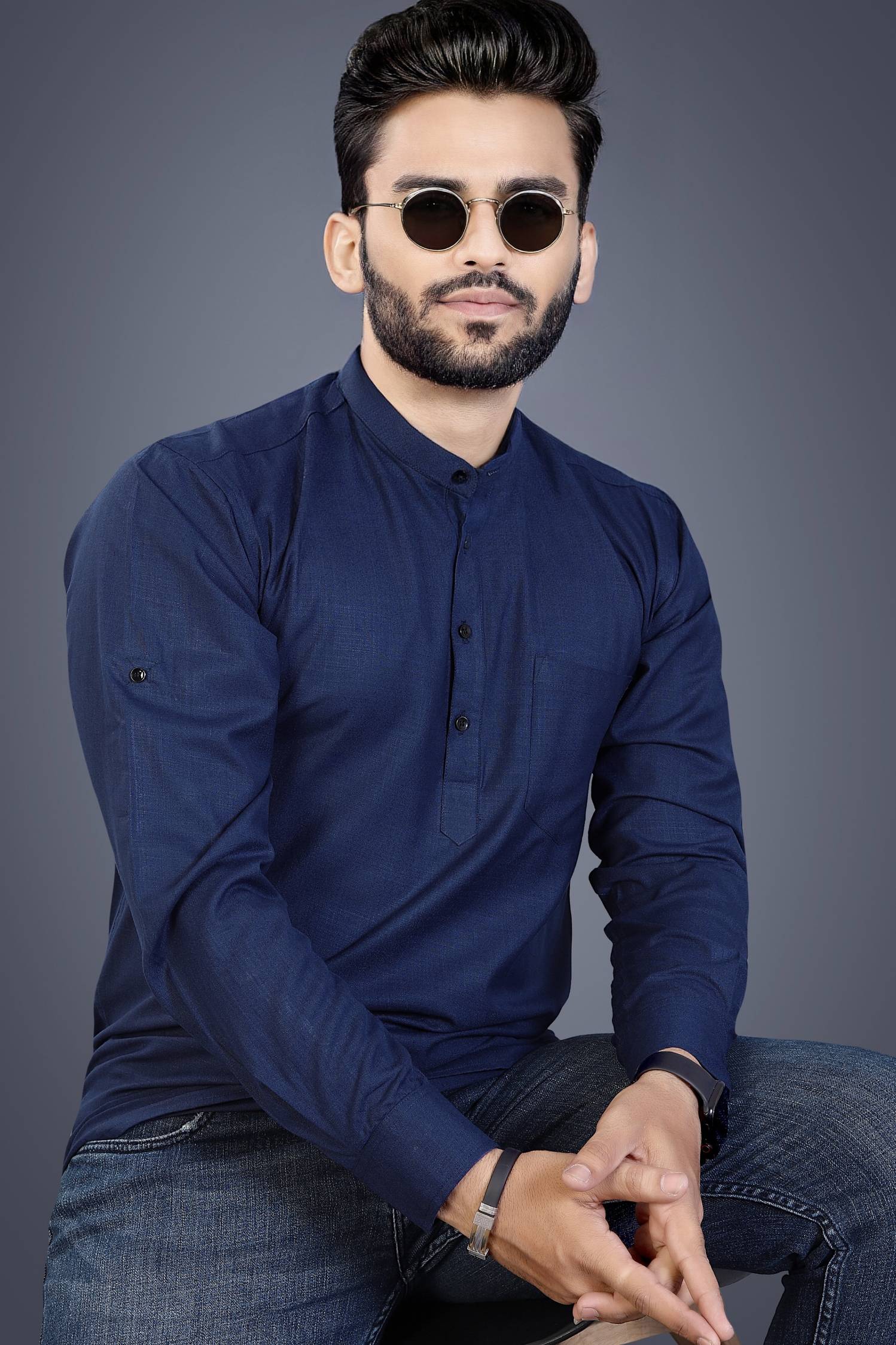 SPOQUE Men Solid Straight Kurta (Dark Blue)