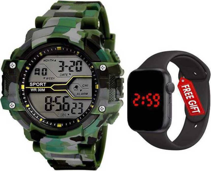 Brand - A Digital Watch With FRE Square LED Shockproof Multi-Functional Automatic Blue Army Strap Waterproof Digital Sports Watch for Men's Kids Watch for Boys - Watch for Men Pack Of 2