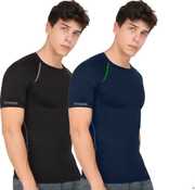 Pack Of 2 Men's Short Sleeve Compression T-Shirt Athletic Top Workout T-Shirt