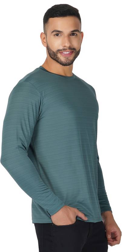 Sportinger Men Solid Round Neck Reversible Nylon Green T-Shirt