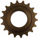 A single speed freewheel is a rear gear mechanism designed for bicycles with only one gear. It features a single sprocket and an internal ratcheting system that allows the rider to coast without pedaling. When the rider pedals, the freewheel engages and drives the rear wheel; when pedaling stops, the wheel continues to spin freely. This simple, low-maintenance component is commonly used on BMX bikes, city bikes, and kids' bikes. It screws directly onto the rear hub and offers smooth, reliable performance for casual riding or commuting.