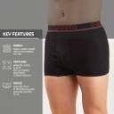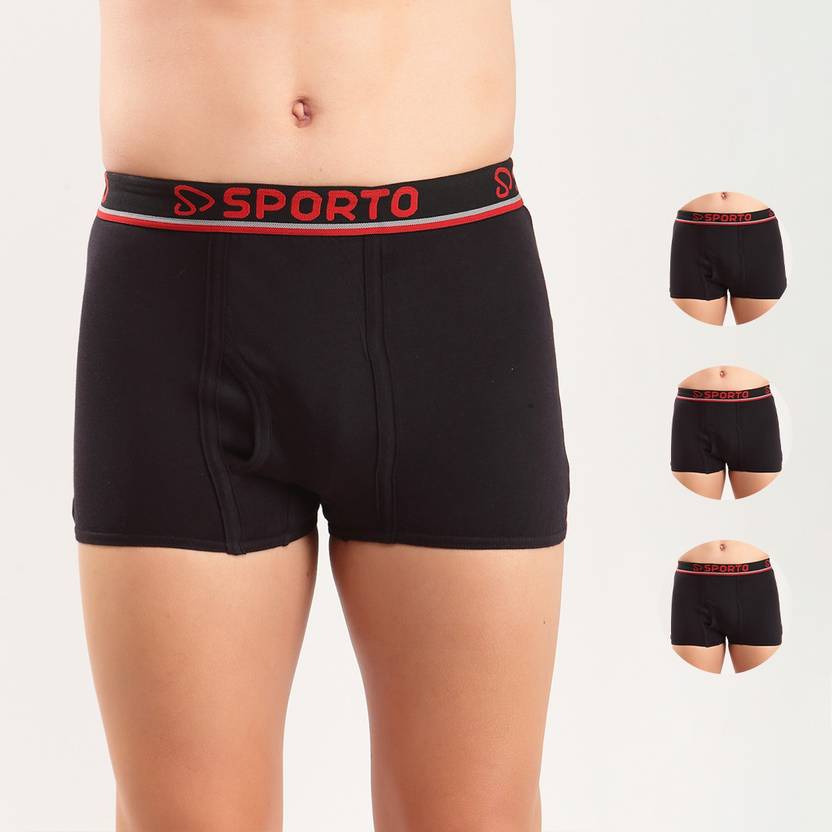 The men's innerwear combo pack of 3 features short trunks made from supremely soft combed cotton, and are designed with a soft and durable waistband. Ideal for the man of today, Sporto men's trunks are designed for convenience and comfort. The pack contains 3 black trunks.