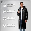 Premium EVA Material: Made from high-quality EVA material that is waterproof, lightweight, and flexible, providing superior protection and comfort in rainy weather., Full-Length Coverage: Long design offers maximum coverage from head to toe, ensuring you stay dry and comfortable even during heavy downpours., Translucent Design: Modern translucent design adds a stylish touch while allowing your outfit to be visible underneath the raincoat.