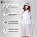 Robustt Raincoat: The Robustt raincoat has long sleeves, a spacious drawstring hood, and a dependable button closure, guarantees to keep you dry during heavy rainfall. Its design not only prioritises protection but also adds a touch of style to your rainy day attire., Premium Quality: Stay stylish and dry with the Robustt Rain coat, made from 100% eco-friendly EVA. It's non-toxic, odor-free, and showcases a tear-resistant, transparent design for a comfortable and fashionable experience on rainy days, Featherlight and Portable: Featuring a lightweight, soft, and breathable design, this rain coat ensures comfortable wear without added heaviness. With quick-drying and reusable qualities, it's a practical and easily portable option for unexpected rain, fitting conveniently into your backpack, home, office, or car.