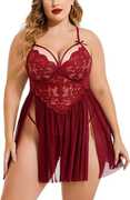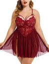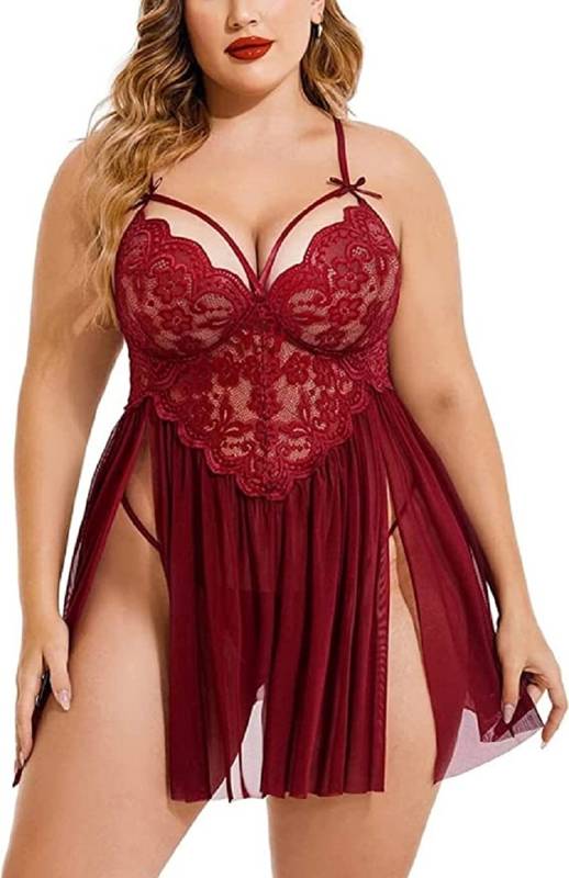 Baby doll nightwear lingerie. Transparent lace and mesh material , cute satin bow in front adds a subtle sexy touch. Babydoll nightwear lingerie comes with a matching g string . This is a free size babydoll nightwear lingerie, will fit sizes Bust Waist Babydoll nightwear dresses creates a beautiful and attractive look or an innocent but naughty look that cannot just add an ageless sex appeal but also completely brings your style to another angle. Just have a glance at this mesmerizing sheer floral lace baby doll outfit and you will fall for it the very next moment. The seductive outfit has perfect design to support the bust perfectly. If tempting transparent dresses lure you, this product is your ultimate pick. It comes with a complimenting thong. it's best fit for 30-36 bust size.
