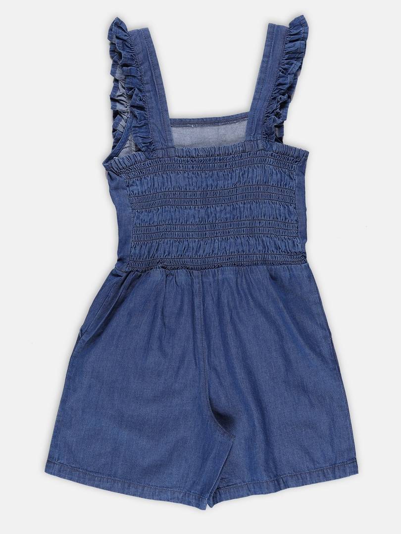 Season’s delight for your little girl! A lovely capri-length jumpsuit for that playday! Ruffle detailing and elastic along the chest make it the right choice with a comfort fit for all day wear.