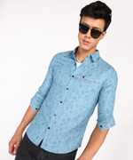 Men Slim Fit Printed Spread Collar Casual Shirt