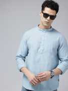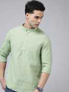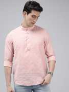 Men Regular Fit Solid Mandarin Collar Casual Shirt