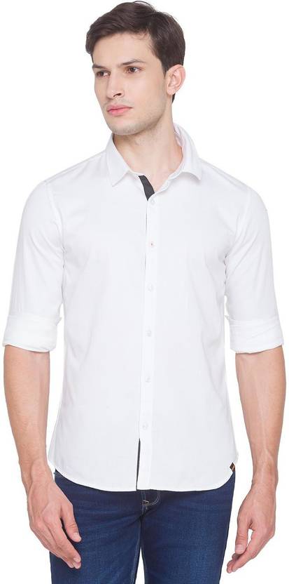Spykar Men Regular Fit Solid Spread Collar Casual Shirt