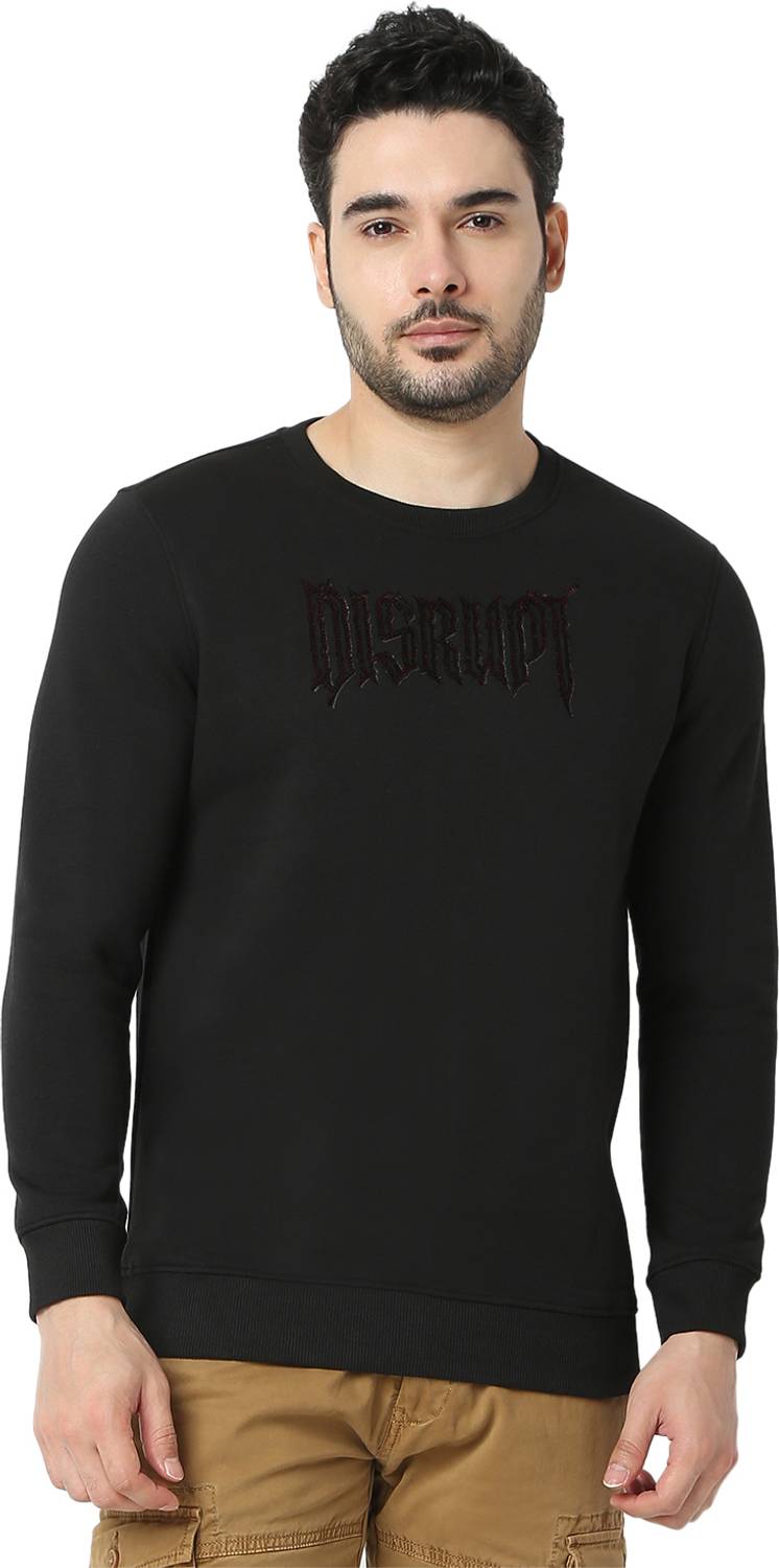 Spykar Solid Casual Men Black Sweater