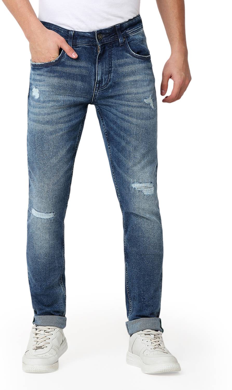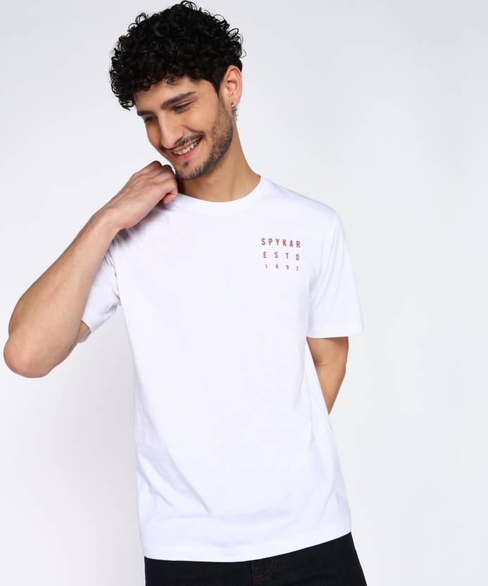 Spykar Solid Men Round Neck White T-Shirt