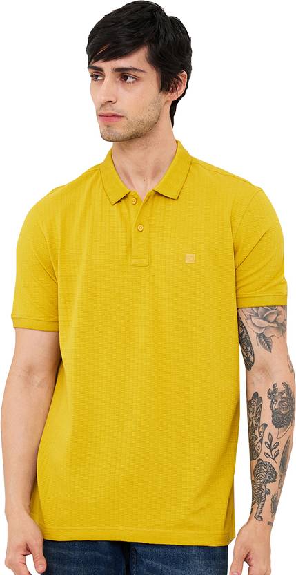 Spykar Solid Men Turtle Neck Yellow T-Shirt
