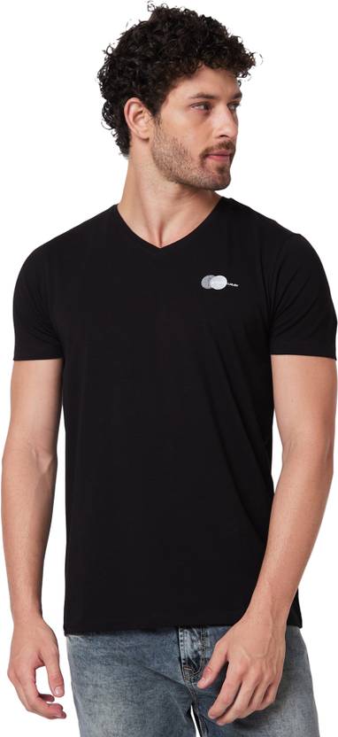 Spykar Men Solid V Neck Cotton Blend Black T-Shirt