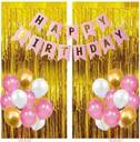 SQE Solid 1 Pink Happy Birthday Banner+2 Pc Gold Fringe Curtain+30 Pcs Mettalic Balloon Balloon (Pink, White, Gold, Pack of 33)